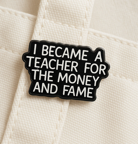 This enamel pin says what every teacher is really thinking: “I became a teacher for the money and fame.” Perfect for totes, jackets or lanyards, it’s the ultimate conversation starter or eye roll inducer. Ideal gift for teachers with a solid sense of humor.